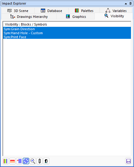 This part of the Visibility page lists all blocks and symbols in all visible layers. You can click on a block or symbol name to toggle its visibility on and off.