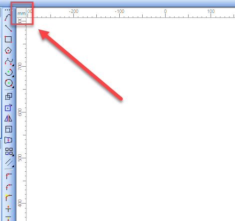 - Double click the unit tile between the horizontal and vertical rulers to cycle between available units.